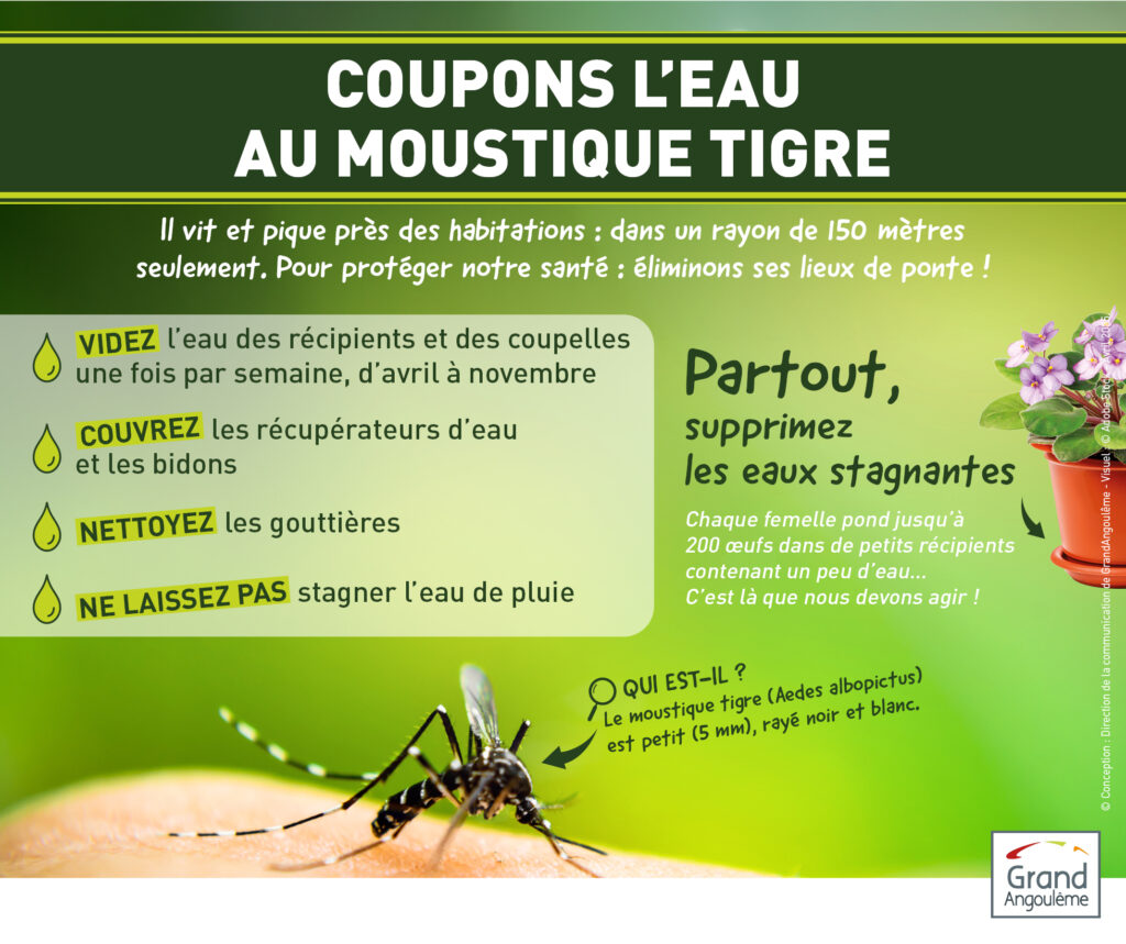 Avec l’arrivée des beaux jours, le moustique tigre fait son retour. Particulièrement actif, il peut piquer plusieurs fois et peut transmettre des maladies. Empêchez-le d’arriver chez vous en suivant les consignes données par l’ARS.